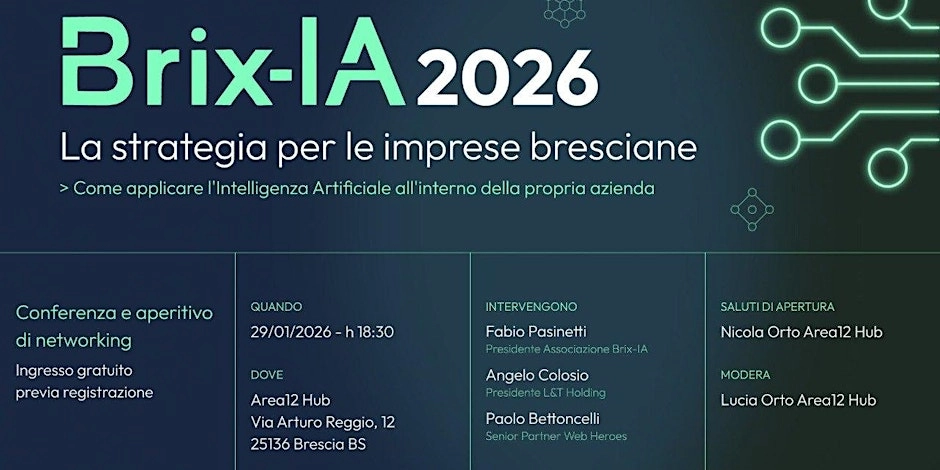 Evento Brix-IA: strategie pratiche per introdurre l’AI in azienda, casi reali e networking con imprenditori e professionisti. 💡 Come applicare